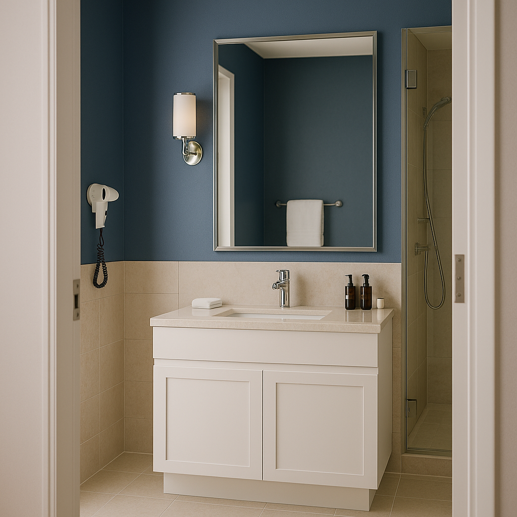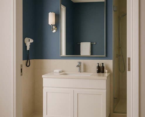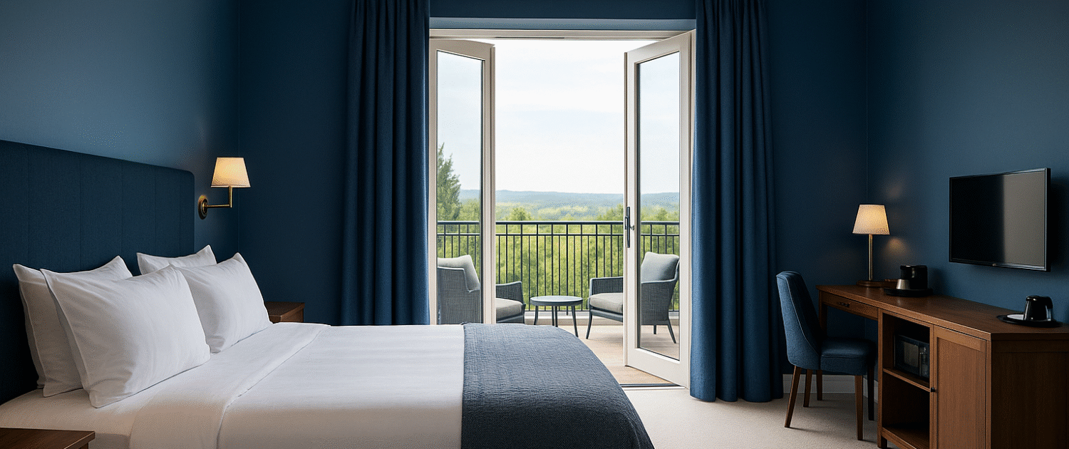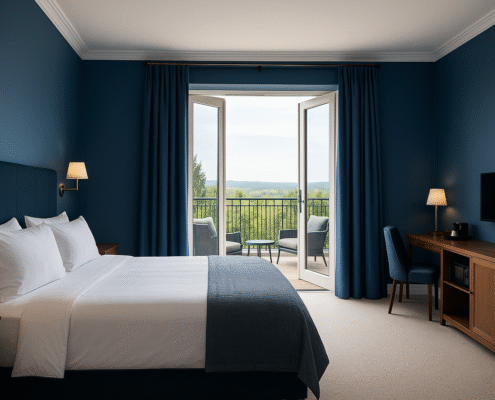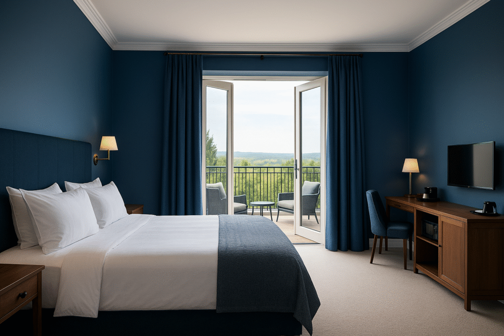 Deze mooie kamer met kleurenthema “Blauw” is ideaal voor een kort of lang verblijf. Deze kamer bevindt zicht op de eerste etage en enkel via een trap te bereiken. Op het balkon kun je genieten van het mooi uitzicht en heerlijk genieten van de middagzon.
